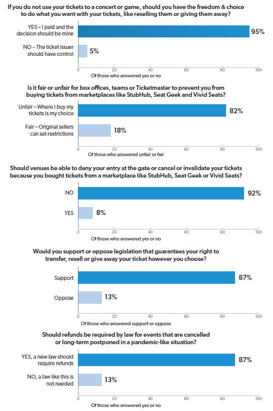 Illinois Consumers Agree! In a survey of 500 Illinois adults March 25 – 29, 2021, nearly 9 out of 10 consumers support the passage of legislation that provides the refund and transferability protections included in the Illinois Ticket Sale and Resale Act.